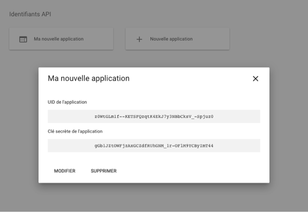 Enregistrez votre application cliente depuis l'Atelier Serveur, pour obtenir les identifiants client nécessaire à l'authentification.